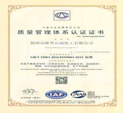 獲得了GB/T19001-2016/ISO19001:2015版質(zhì)量管理體系認(rèn)證書,GB/T24001-2016/ISO14001:2015版環(huán)境管理體系認(rèn)證證書,ISO45001:2018版職業(yè)健康管理體系認(rèn)證證書,通過(guò)了省,市安全,環(huán)??荚u(píng),監(jiān)測(cè)頒證,獲得“安全生產(chǎn)標(biāo)準(zhǔn)化”三級(jí)企業(yè)證書!